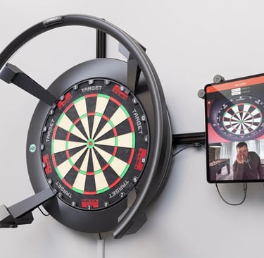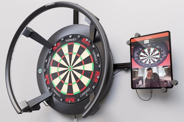 Tip: Denk aan een dartapp waar je de score bij kan houden. Je kan hier een tablet voor gebruiken waar je de dartapp op afspeelt of een zelftelsysteem zoals het Target Omni systeem als je liever digitaal speelt. Beide voegen gemak én sfeer toe. Hieronder een afbeelding van het Target Omni zelftelsysteem:
