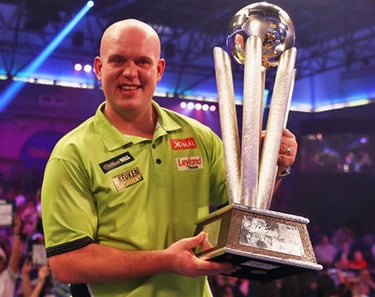 Sinds zijn doorbraak in 2012 domineert Van Gerwen met zijn explosieve tempo en ongekende focus. Hij heeft honderden titels gewonnen en blijft de maatstaf voor moderne darters.