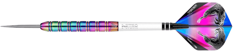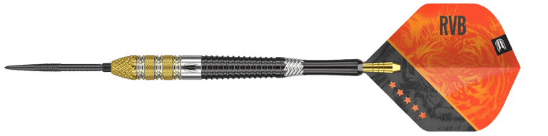 Uitrusting: Target RVB95 Gen 4 darts, strak ontworpen voor precisie en controle.